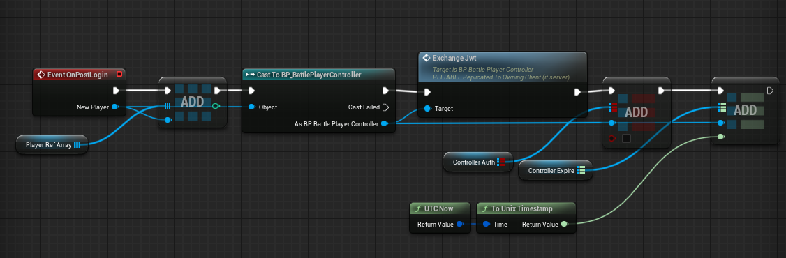 まずEvent OnPostLoginをオーバーライドし、PlayerControllerを先ほど作成したカスタムクラスにcastし、RPCを送ります。流れとしてサーバー→クライアントです。